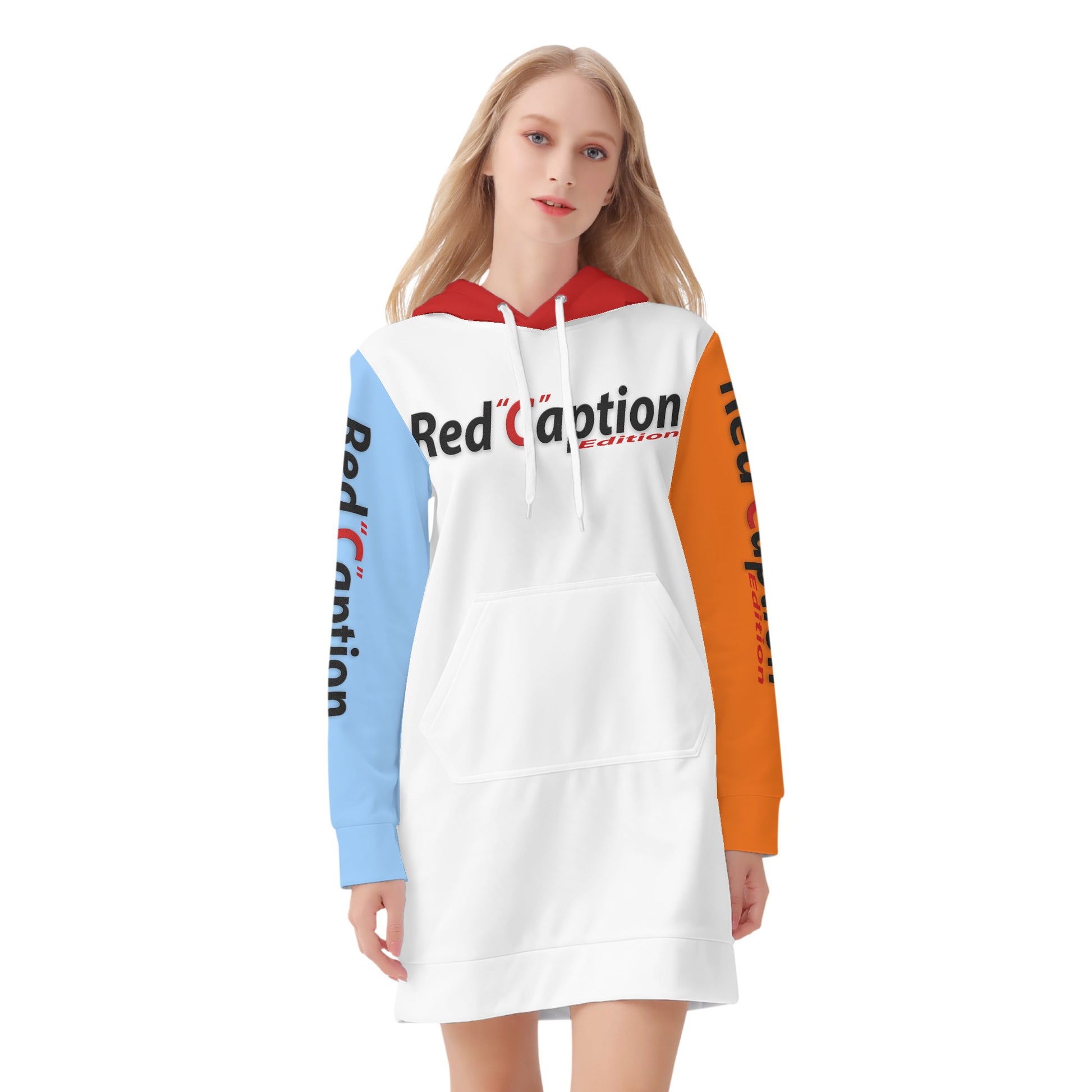 Red Caption Hoodie Dress 1